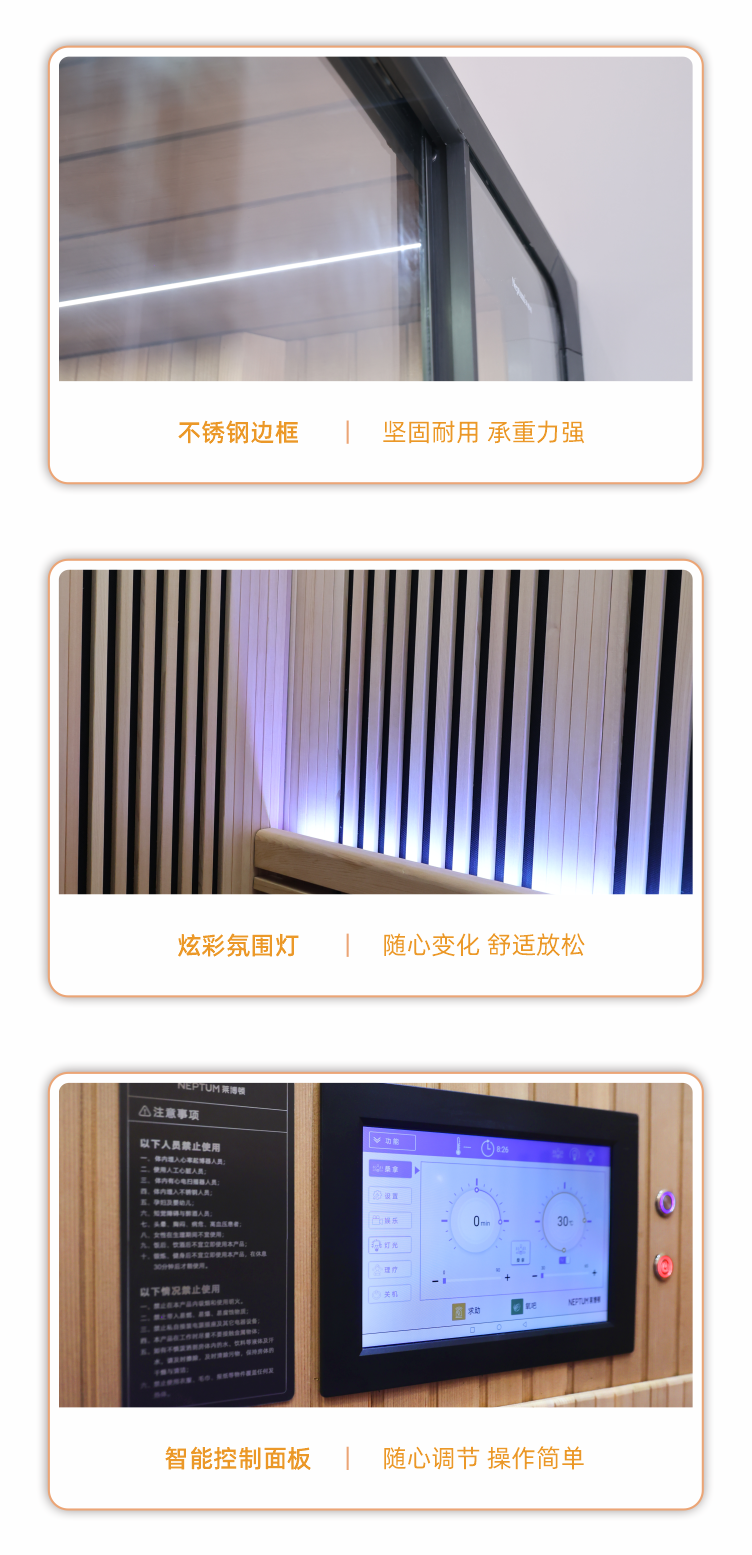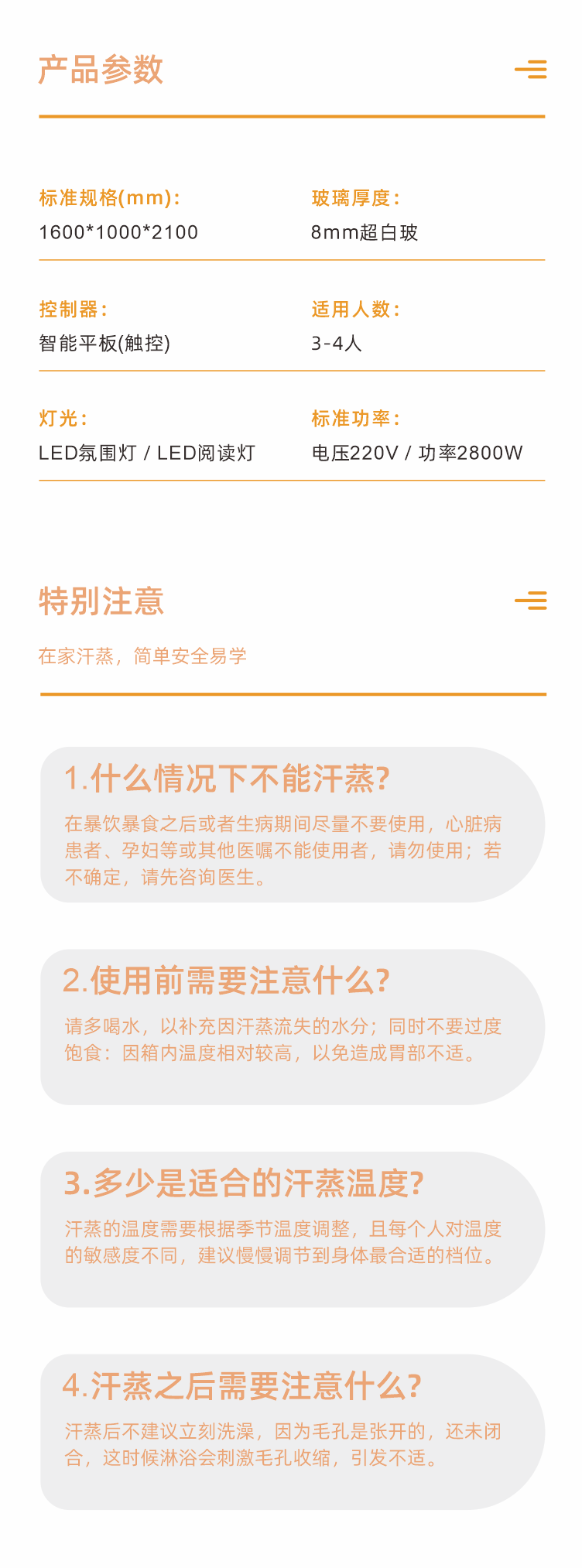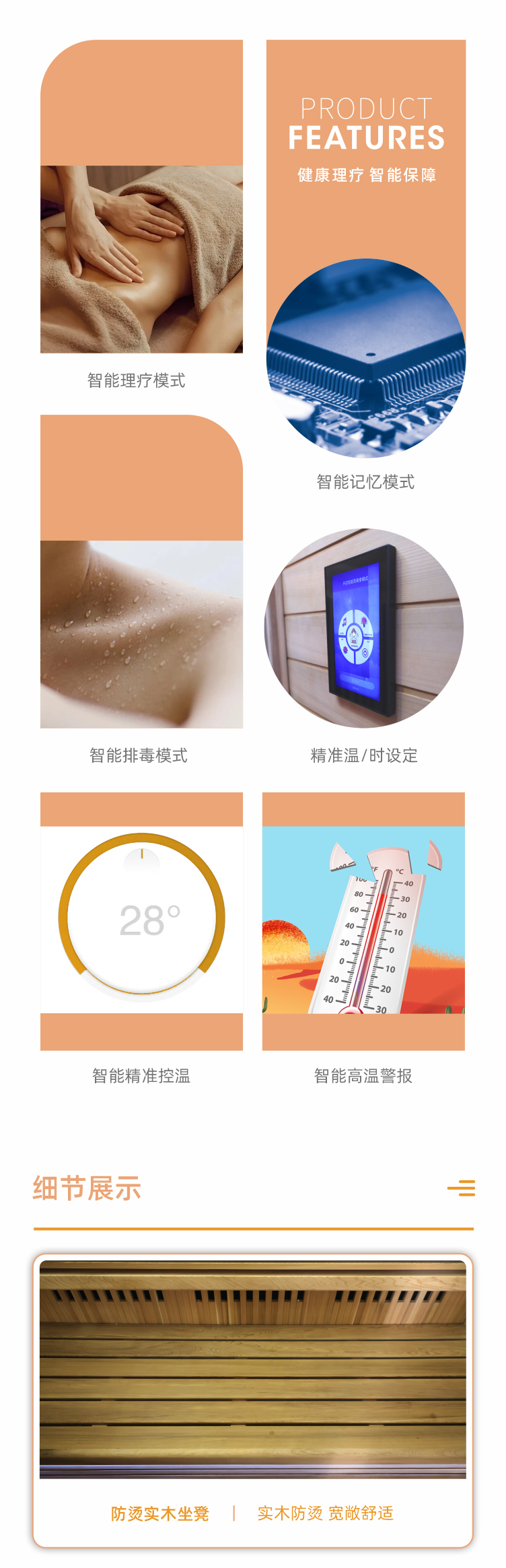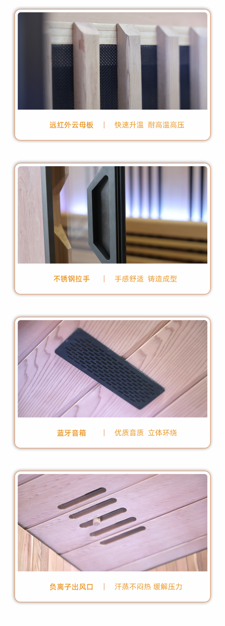 光波房颠覆了之前所以桑拿房的设计,利用红外线科技光波功能取代现代普遍的桑拿房和汗蒸房,成为新一代的养生保健标配。