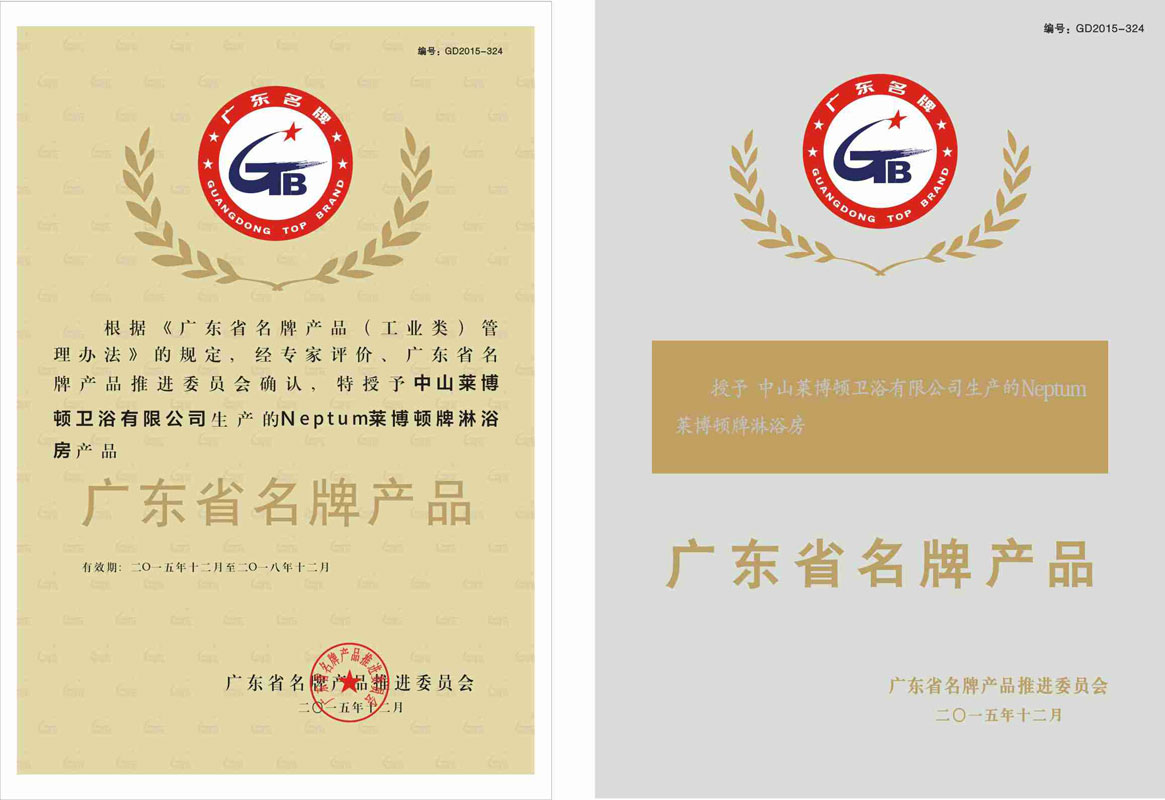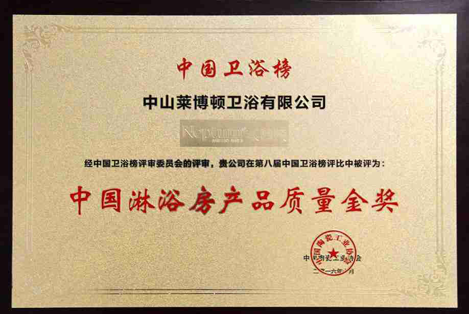 2016中国淋浴房产品质量金奖