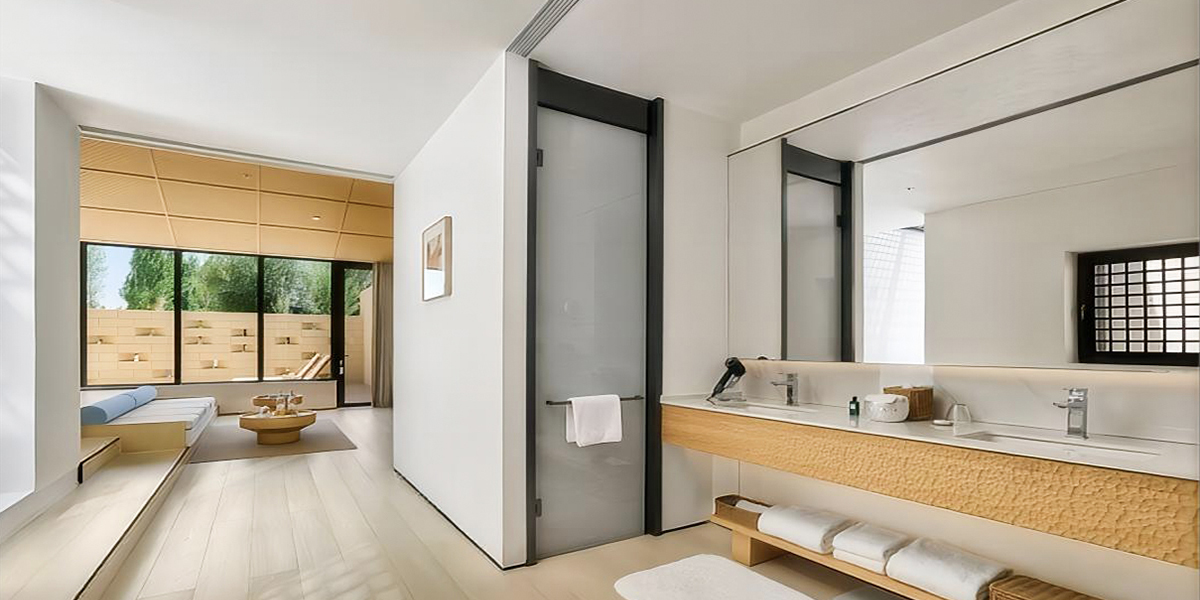 莱博顿提供的卫浴空间解决方案和其精致奢华的格调不谋而合,夹丝玻璃工艺尽显尊贵奢华,让客人在旅途劳累休息之余来一场酣畅淋漓的淋浴,享受“荒漠绿洲、沙漠花园”带来的舒心宁静的隐秘生活。
