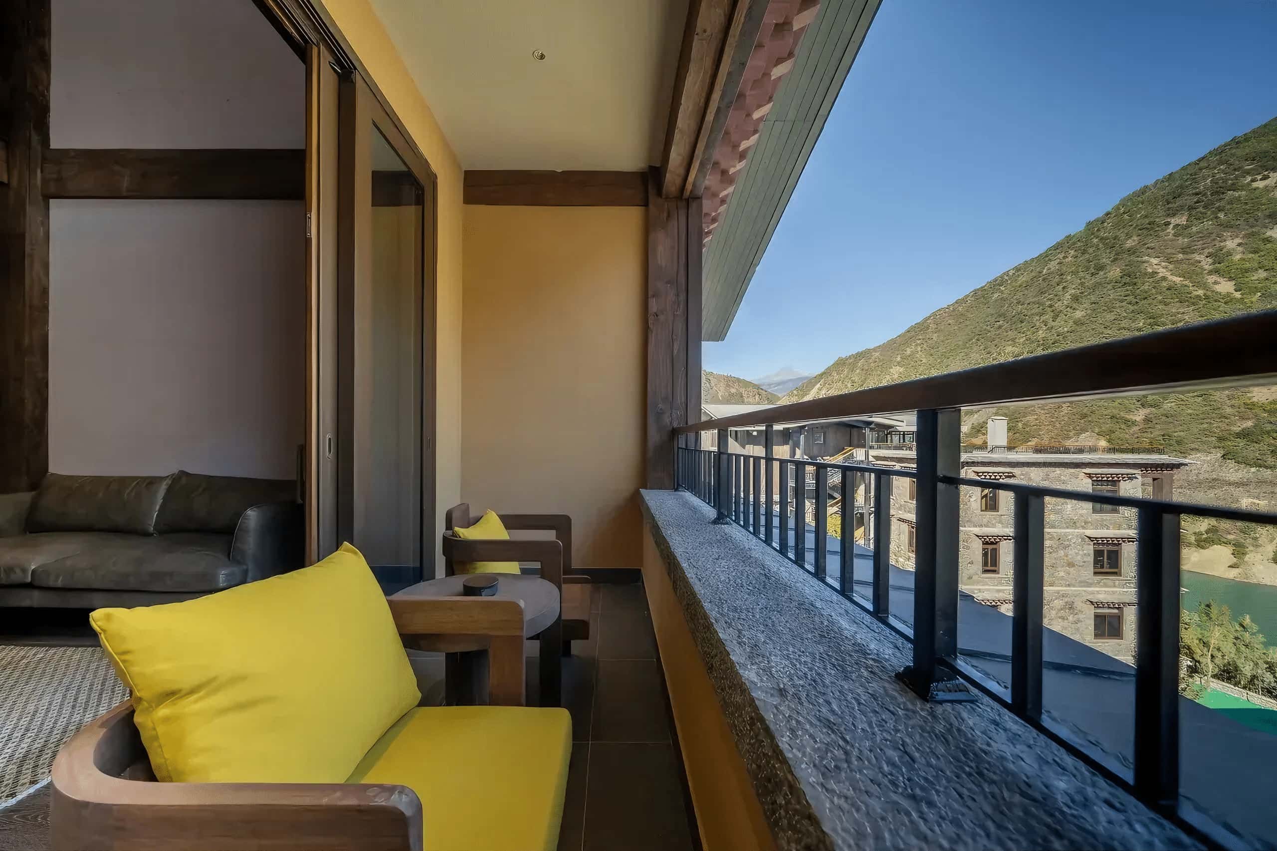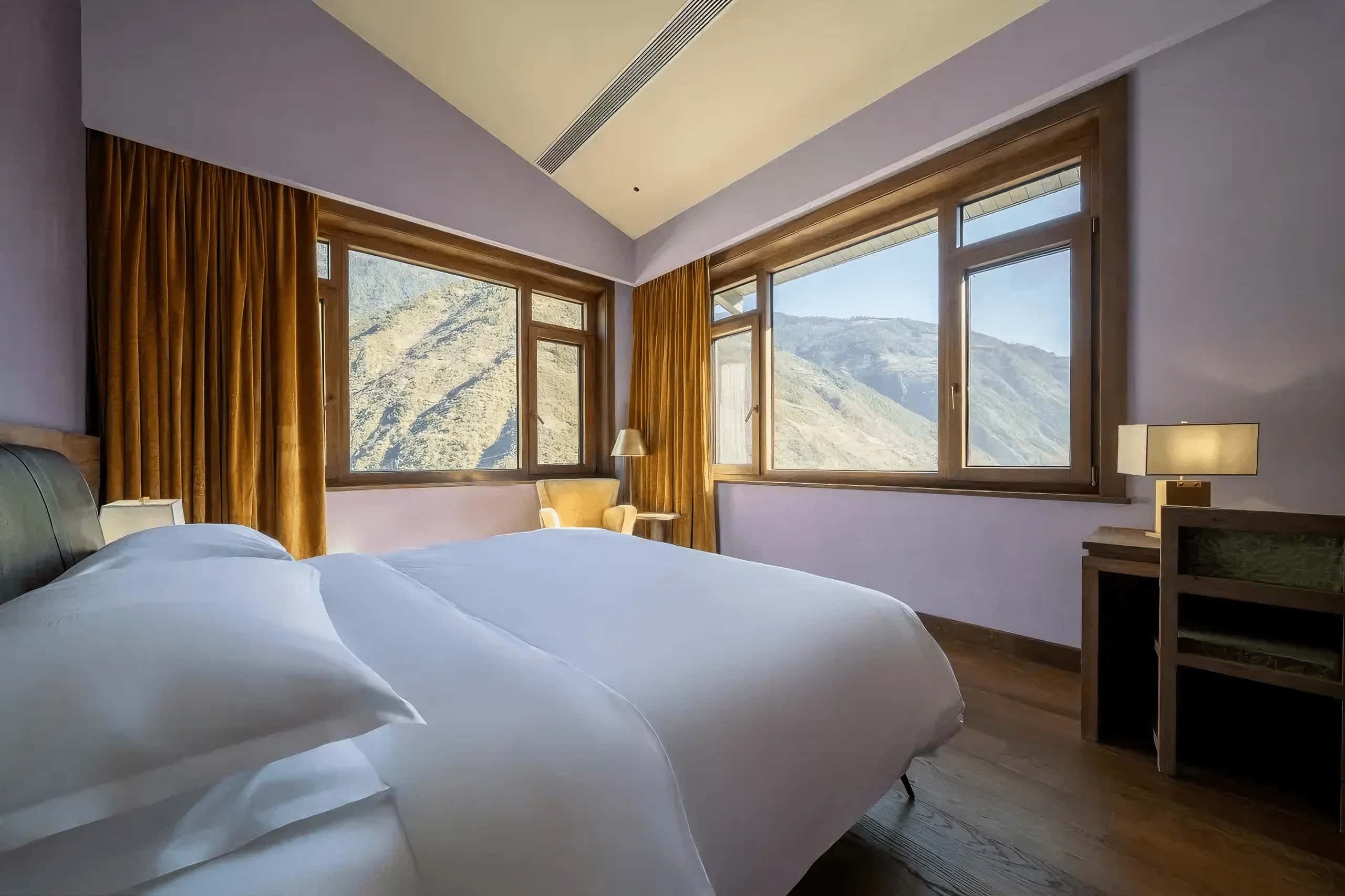 客房视野开阔,部分房型可在房内遥望澜沧江峡谷和茨中教堂。主卧浴室配备深泡浴缸,部分客房配有手工打造的铜质洗脸盆,这也是松赞酒店标志性的特色之一。