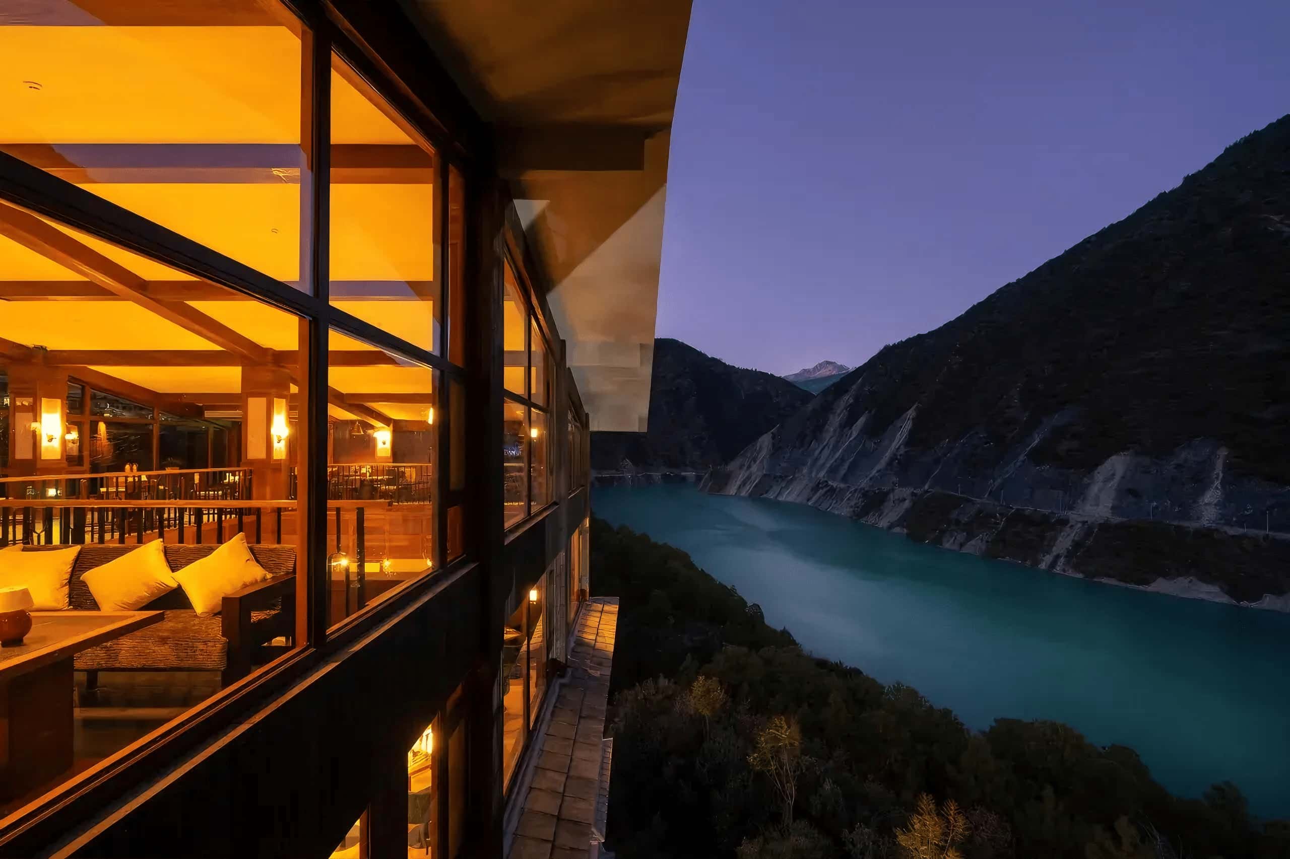 酒店的设计紧扣这一主题,建筑为传统藏式石木结构,内部则巧妙混搭了青花瓷、核桃木家具等东方元素与欧式吊灯、铜质烛台等西方装饰。