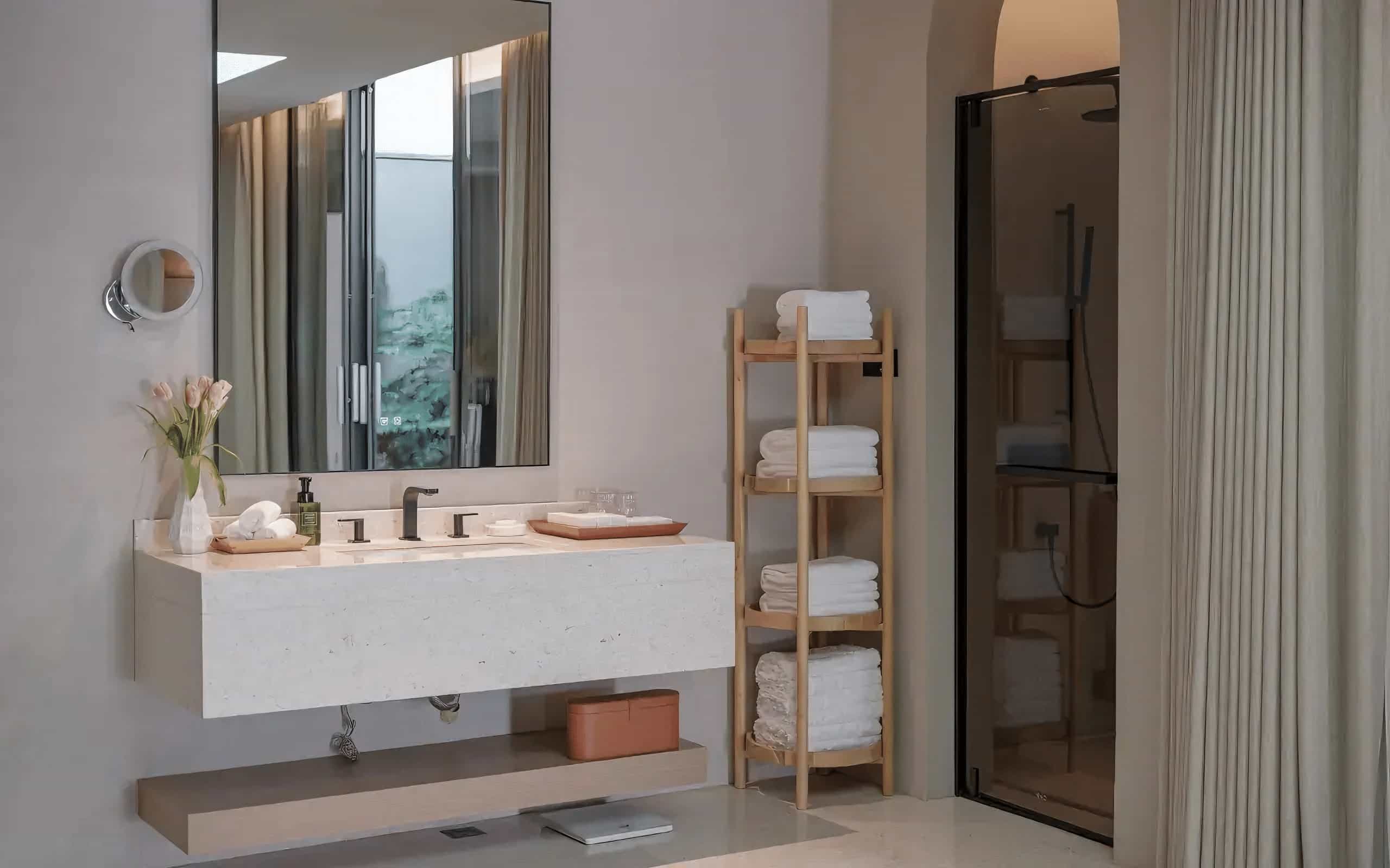 莱博顿卫浴携手腾冲微风和院温泉度假酒店,以极具视觉层次的结构美学,搭配简约设计的莱博顿产品,将卫浴空间自然划分,满足使用功能需求的同时,最大化调动居者的感官与情绪,为他们带来高品位的卫浴生活体验。