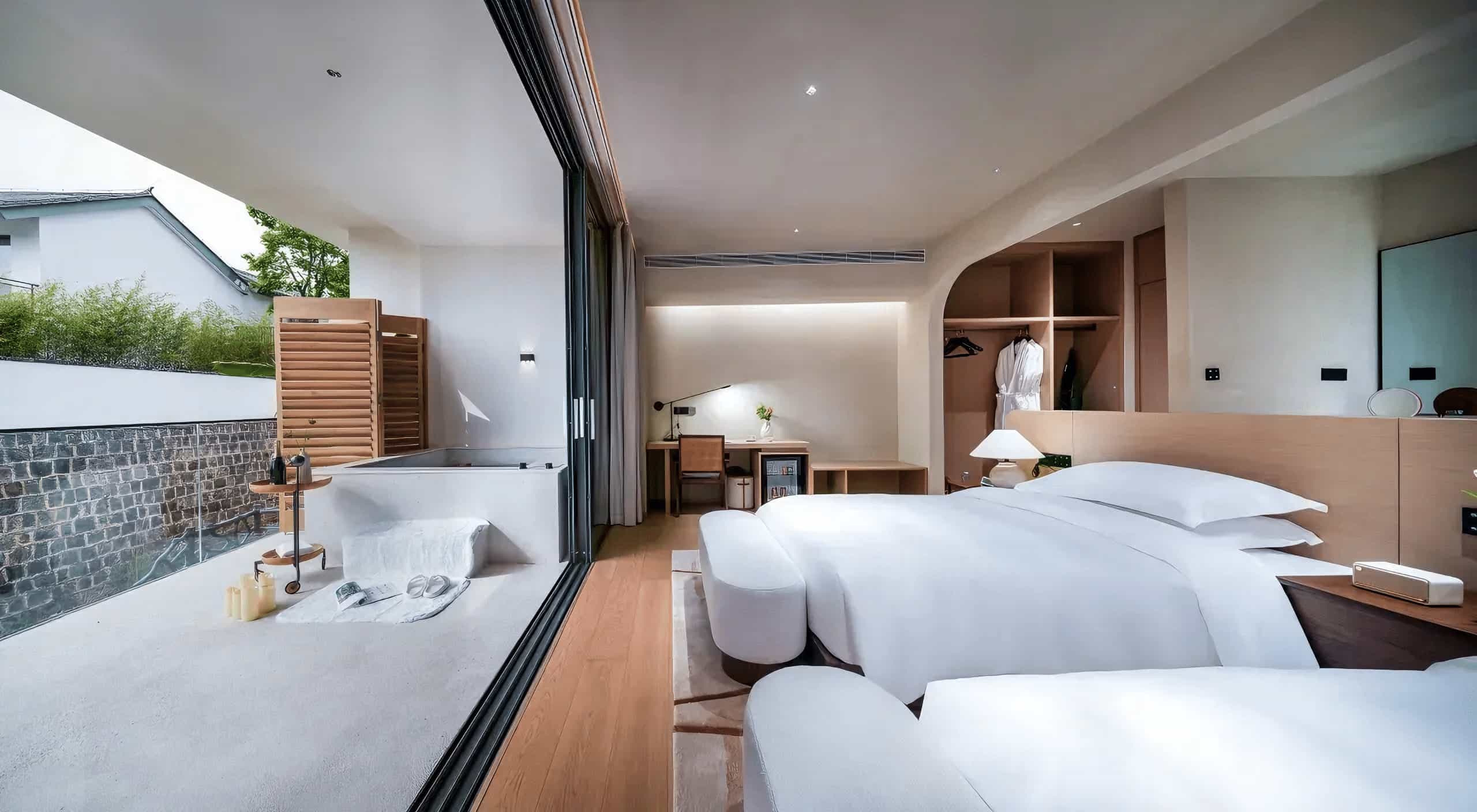 腾冲微风和院温泉度假酒店以简奢清幽,蕴藏着东方美学独有的雅致与静谧。