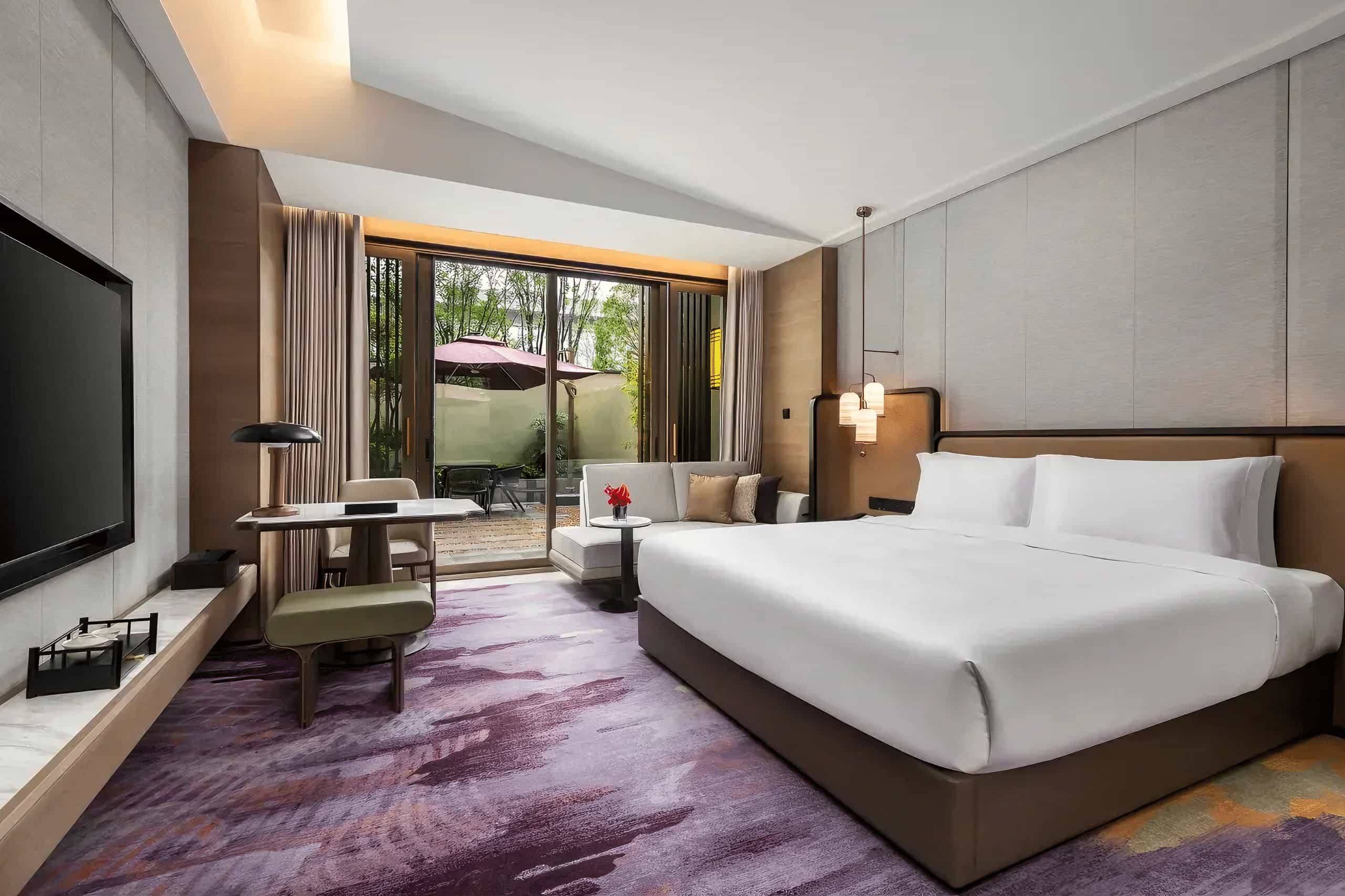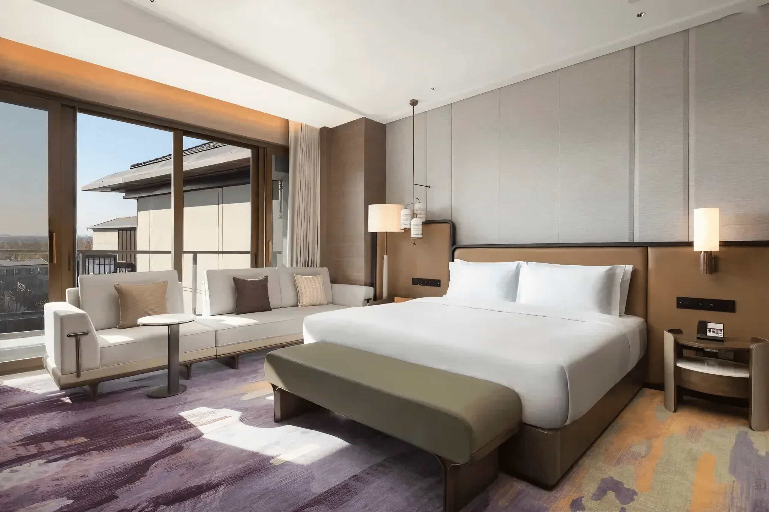 咸阳华邑酒店是洲际酒店集团为中华文化定制的豪华酒店品牌,设计灵感源于“萧史弄玉”的秦代神话,风格上融入“紫凤赤龙”的祥瑞气韵。酒店拥有236间客房及25栋别墅,所有客房均配备高端床品、精致的卫浴设施和全球知名水疗品牌洗护用品。酒店提供配置了专属户外私汤池的“私汤房”,以及与中式庭院景观直接相连的“庭院房”。