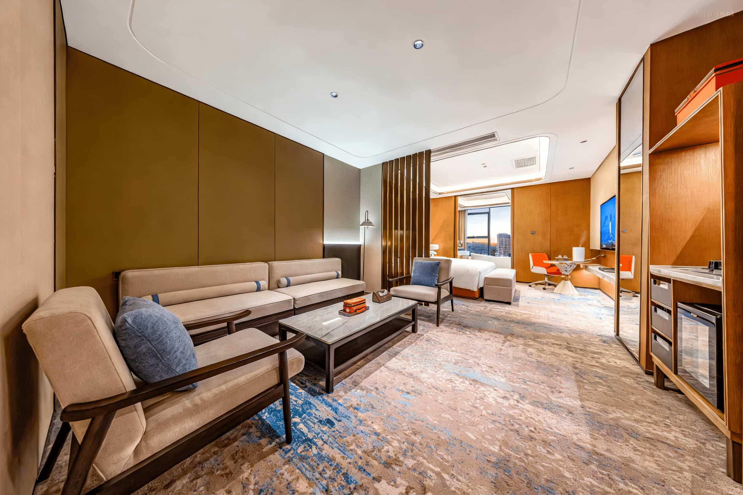 坐落于哈密市迎宾大道56号的华凯国际酒店。酒店有336间客房,十种房型定制舒适酒店拥有336间精心打造的客房,涵盖总统套房、豪华至尊套房、亲子房、豪华套房、行政套房、行政大床房、雪景大床房、城景大床房、豪华标间、无障碍房10种房型,可满足商务差旅、家庭出游、高端接待等各类场景需求。房间布置兼具典雅温馨与现代奢华,配备中央空调、私人保险箱、卫星闭路电视、国际国内直播电话、多媒体宽带网络、迷你吧、电子门匙系统等高端设施,让每一位宾客在舒适自由的环境中,尽享居家般的愉悦与便捷。