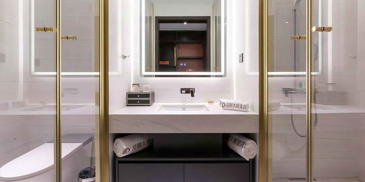 莱博顿卫浴携手大观金湾酒店,注重产品的内在品质与审美格调,以轻盈灵动的线条和优雅沉稳的色系,增强卫浴空间的秩序感与整体感,构建出和谐统一的现代美学空间。